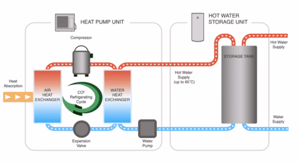 Heat pumps cost less compared to hot water tanks over the long run because they are more energy efficient. Heat pumps pump heat using a compressor and circulating gas refrigerant, which use up to 75% less electrical energy compared to a conventional hot water system.